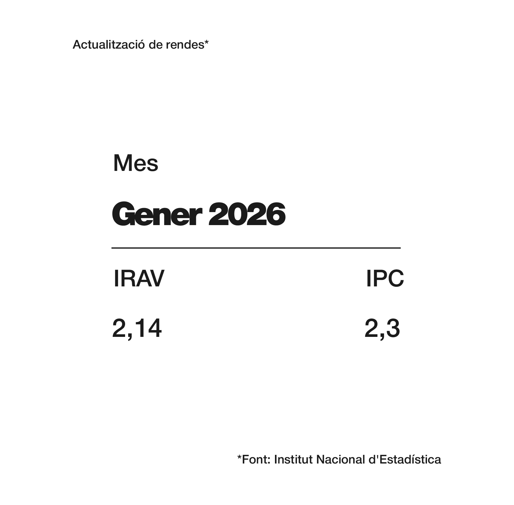 Consulta els valors de Gener de 2026 de l’IPC i de l’IRAV, valors necessaris a l’hora d’actualitzar la renda dels contractes de lloguer